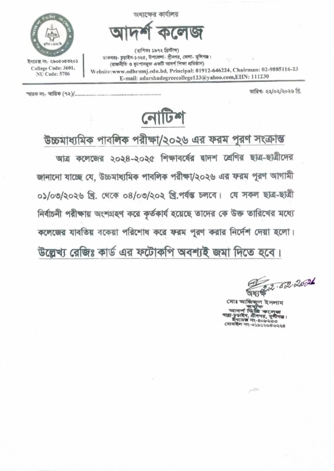 ইমেইলঃ:adarshadegreecollege123@yahoo.com, মোবাইলঃ 01912646224 ফোনঃ 02-9885116-23